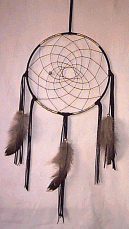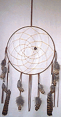 Legenden om drömfångaren. I urminnes tider har det berättats att, Gammelmor Spindel, som skapade Universum, var sorgsen över alla mardrömmar som hennes människo-barn hade. Hon gick till pilträdet och bad om dess grenar. Hon gick även till örnen och bad om dess fjädrar. Sedan böjde hon grenen av pil till en cirkel som inneslöt alla människor på Jorden. Hon spann sitt nät av visdom runt pilgrenen för att fånga sina människobarns mardrömmar. Fader Sol´s morgon-strålar brände bort mardrömmarna som fanns kvar i nätet. De förvandades till morgon-dagg som sakta droppade ner längs fjädrarna och tillbaka till Jorden....... |